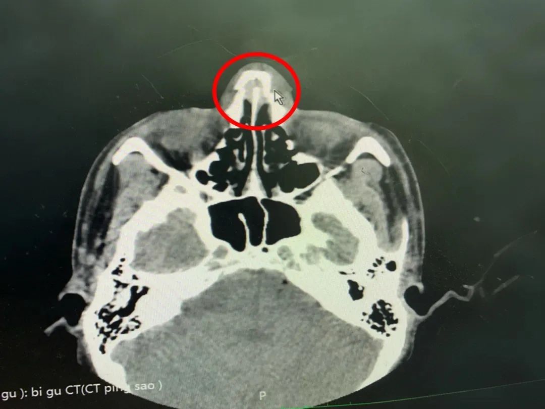 醫生通過CT檢查顯示:雙側鼻骨骨折,斷端錯位,周圍軟組織稍腫脹,正如醫生猜測的那樣,確診:“鼻骨骨折”。